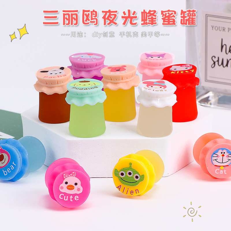 Casing ponsel buatan tangan DIY pot madu generasi kedua bercahaya kartun kreatif populer aksesori resin lem krim buatan tangan lampu malam