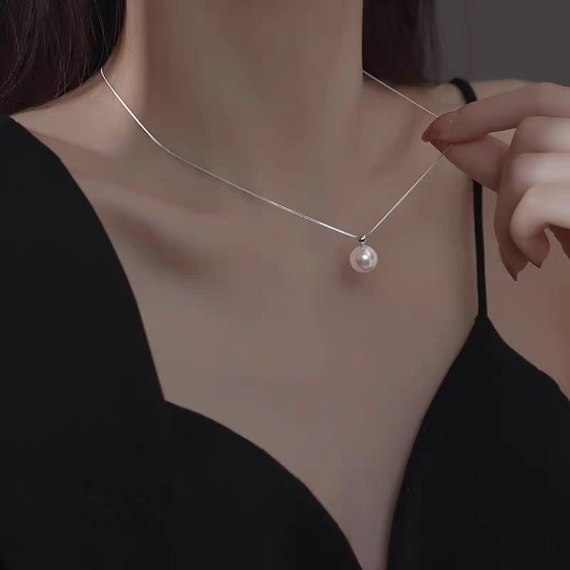 Liontin kalung mutiara wanita, kalung rantai sweater sederhana kelas tinggi mewah ringan ins populer baru 2024