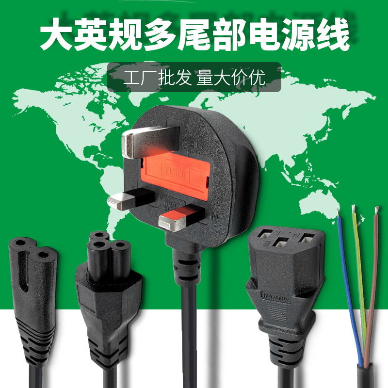 Pasokan langsung pabrik kabel daya tiga steker Inggris kabel daya Inggris standar Inggris kabel daya delapan-tail plum blossom kabel pin-tail