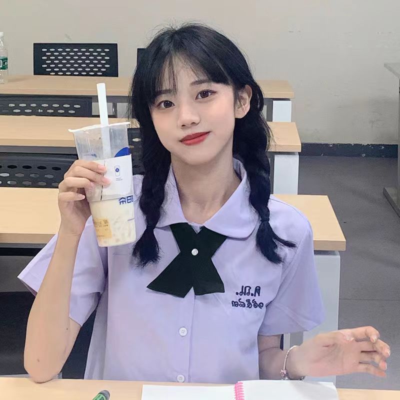 Seragam sekolah Thailand Perempuan, seragam sekolah gaya sama, kemeja lengan panjang, rok pendek JK, setelan seragam kelas wisuda