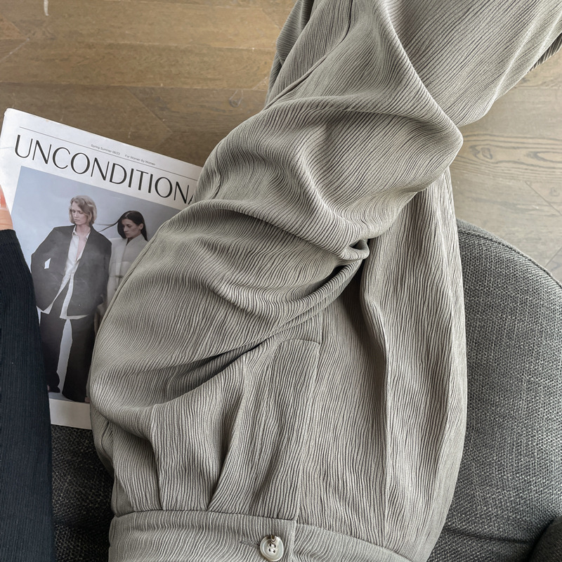 2024肌理感女裤小个子直筒灰色西装裤高级感垂感冰丝阔腿裤女春夏