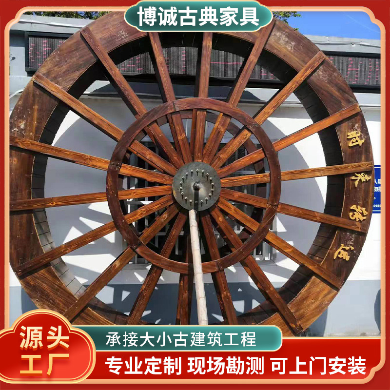 Gerobak dorong kayu solid anti-korosi gaya Cina baru untuk lanskap rumah tangga luar ruangan, halaman taman, roda air yang dioperasikan dengan kaki, grosir