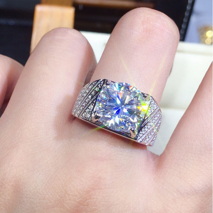 5 karat berlian penuh delapan hati dan delapan panah berlapis PT950 simulasi berlian cincin terbuka pria dan wanita TikTok siaran langsung tangan cepat