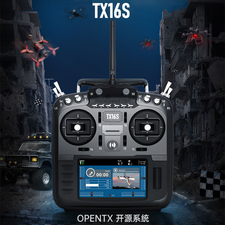 Radiomaster model pesawat TX16S, remote control MK II built-in multi-protocol 4-in-1 ELRS bahasa Mandarin dan Bahasa Inggris