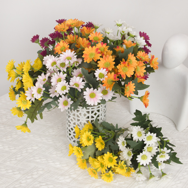 Buket bunga aster kecil buatan, dekorasi pernikahan bergaya pedesaan, sejambak bunga kamomil kecil, bunga sutra, bunga palsu grosir.