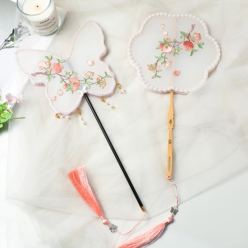 Kipas Rumbai Gaya Kuno Cina Bordir Hanfu Klasik Kipas Kupu-kupu Buatan Tangan Kipas Angin Bulat Anak-Anak Kipas Tari Delima