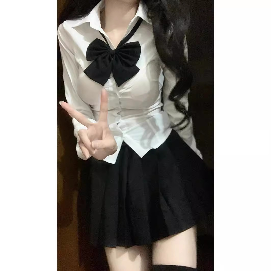 Setelan seragam kemeja putih Semua cocok, kemeja lengan panjang jk, kemeja ketat pinggang keinginan murni musim semi dan musim gugur untuk wanita