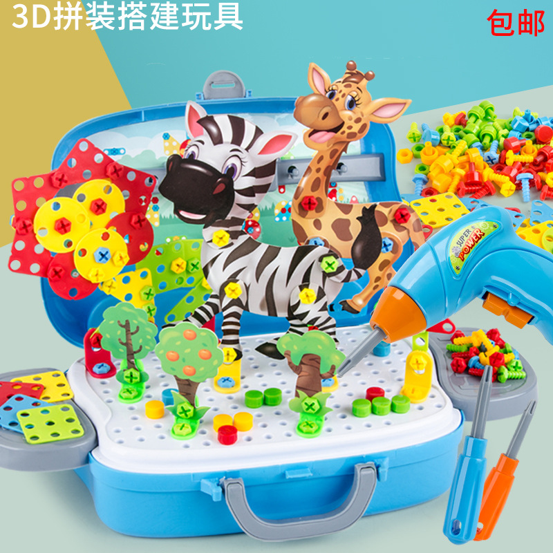 Kotak penyimpanan alat reparasi rumah bermain anak, mainan anak laki-laki, setelan obeng bor tangan simulasi