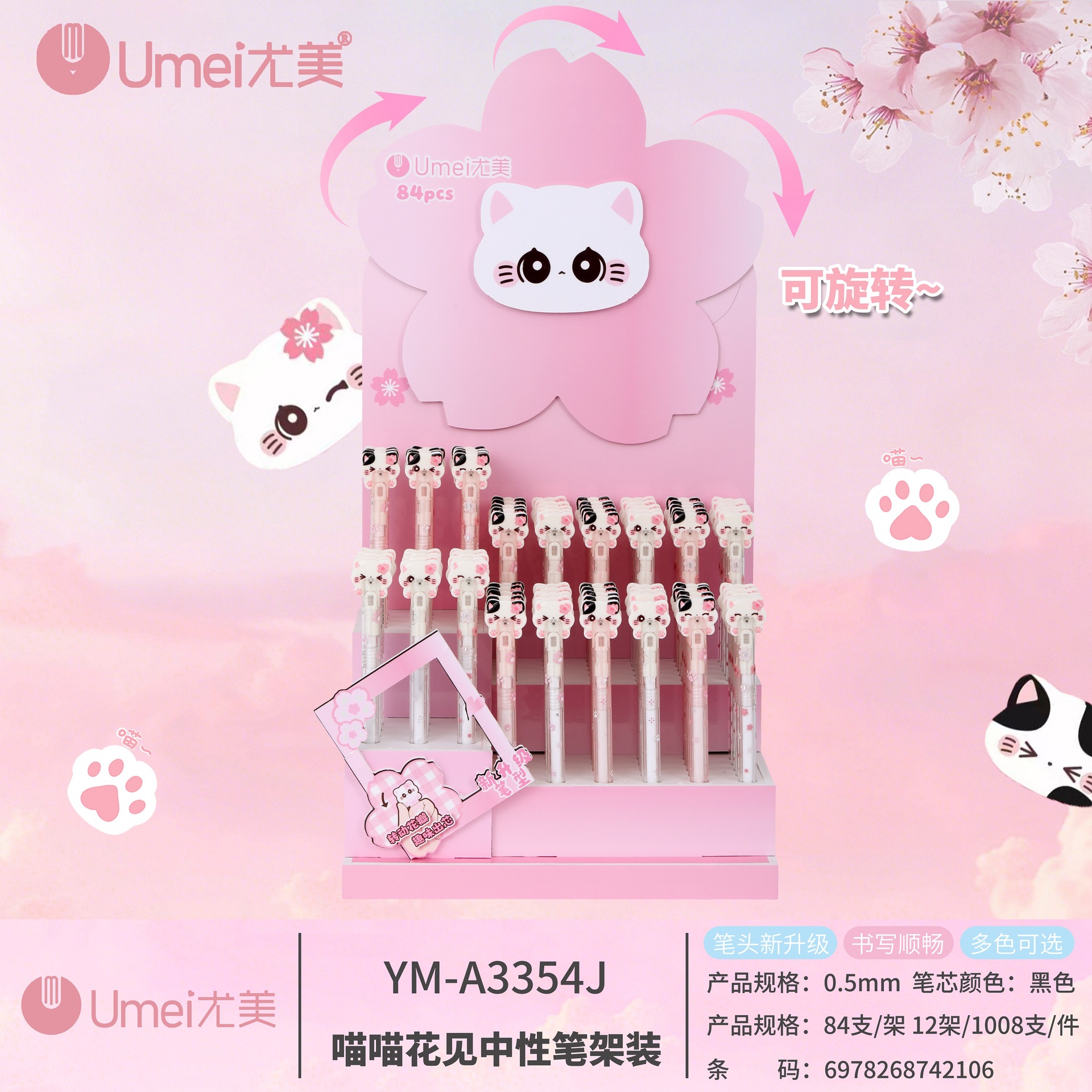尤美A3354喵喵花见系列中性笔可爱学生顺滑速干黑笔办公签字笔