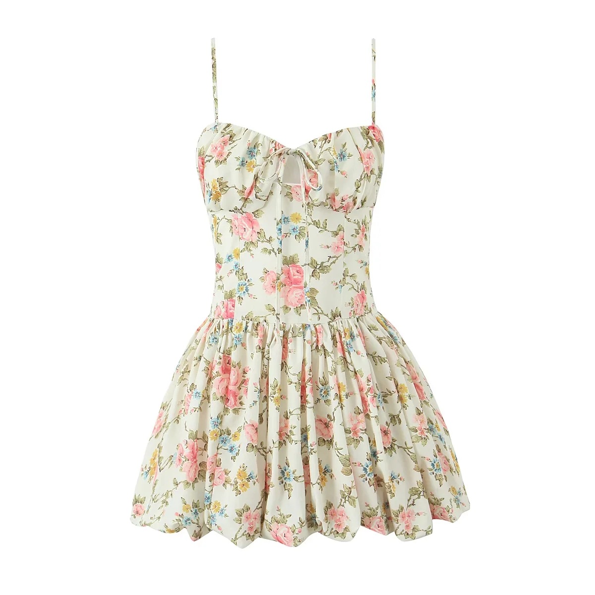 Gaun princess mini, gaun mini tali cetak bunga pastoral retro Prancis baru musim semi 9657-24