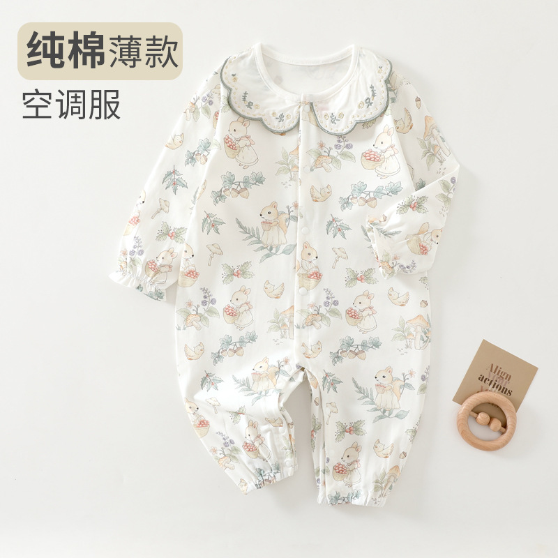 婴儿衣服长袖夏季婴幼儿连体衣纯棉宝宝爬服无骨哈衣空调服透气