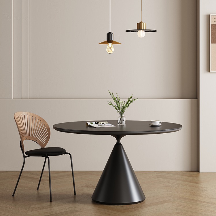 Meja Makan Bentuk Bulat Papan Batu Penuh Meja Bundar Rumah Tangga Putih Murni Modern Kecil Meja Bundar Meja Makan dan Kursi Berputar Hitam Delafone
