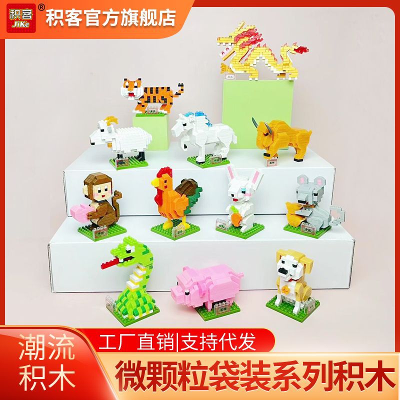 Jike blok bangunan teka-teki partikel kecil berlian mikro zodiak hewan ekspor zodiak Cina Tikus Ox harimau kelinci naga
