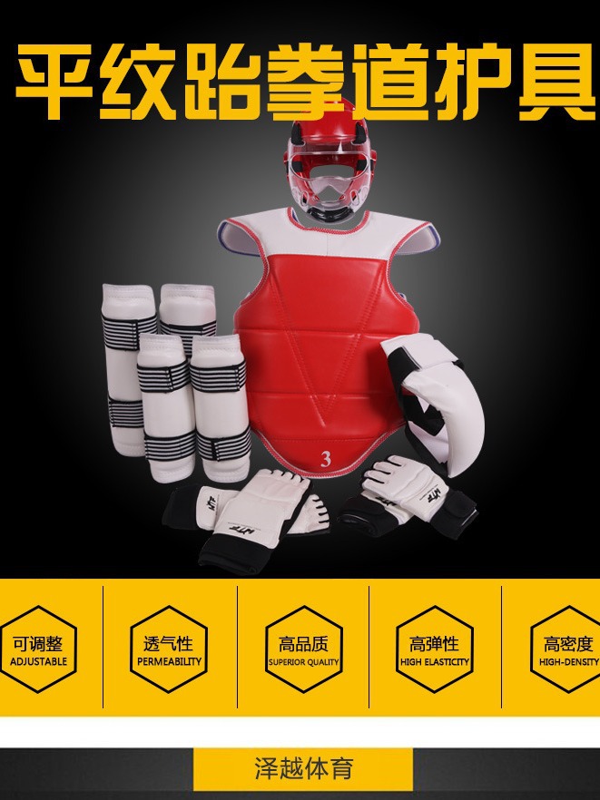 Perlengkapan pelindung Taekwondo, lima buah set, delapan-potong, tempur polos tebal, perlengkapan perlindungan produsen, mendukung grosir