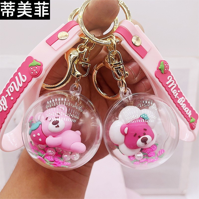 Gantungan Kunci Beruang Stroberi Kartun Gantungan Kunci Mobil Liontin Ransel Hadiah Grosir Boneka Sakura