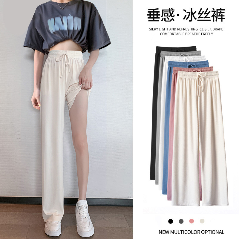 Celana kaki lebar tipis wanita, bawahan olahraga kasual anti-nyamuk, pinggang tinggi menggantung tipis musim panas untuk perempuan