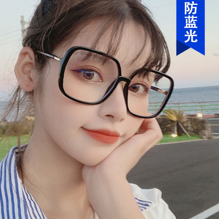 Kacamata anti-cahaya biru bingkai besar Zhou Yangqing, kacamata hitam persegi baru 2020, pilihan influencer, kacamata lensa datar
