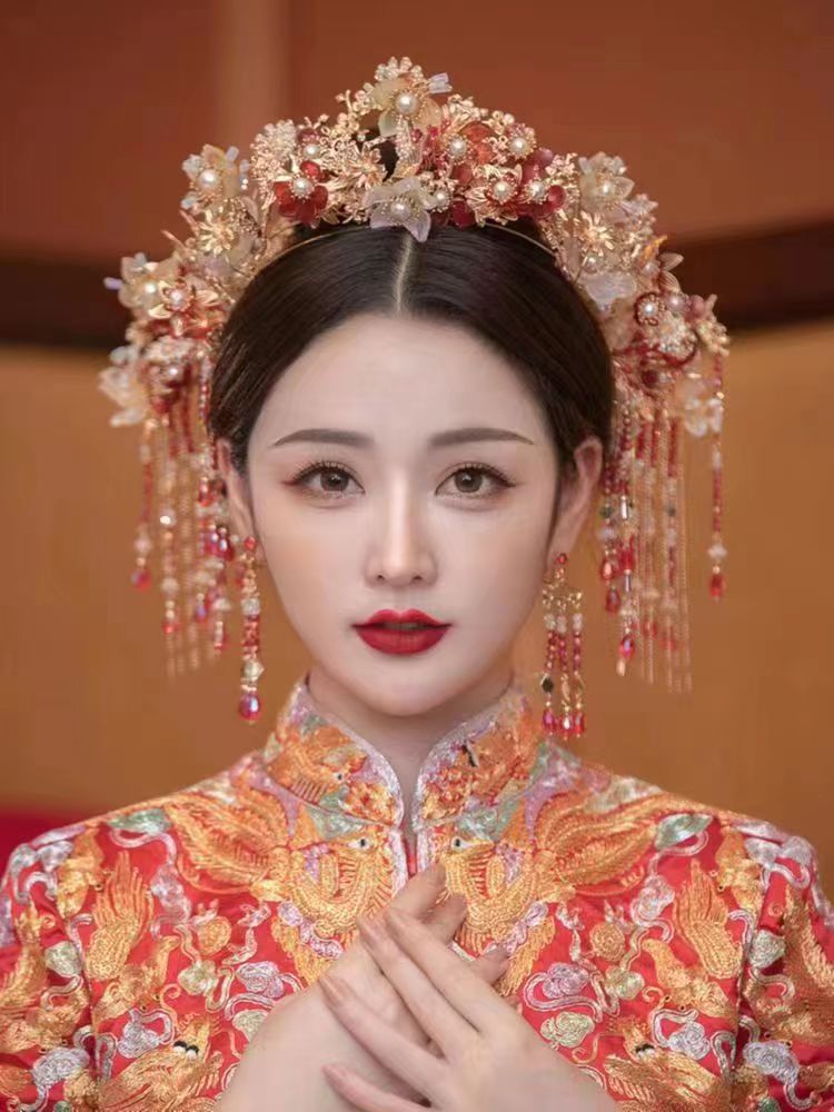 Hiasan kepala pengantin, Aksesori gaun pernikahan Xiuhe, hiasan kepala rumbai langkah jepit rambut setelan 2023