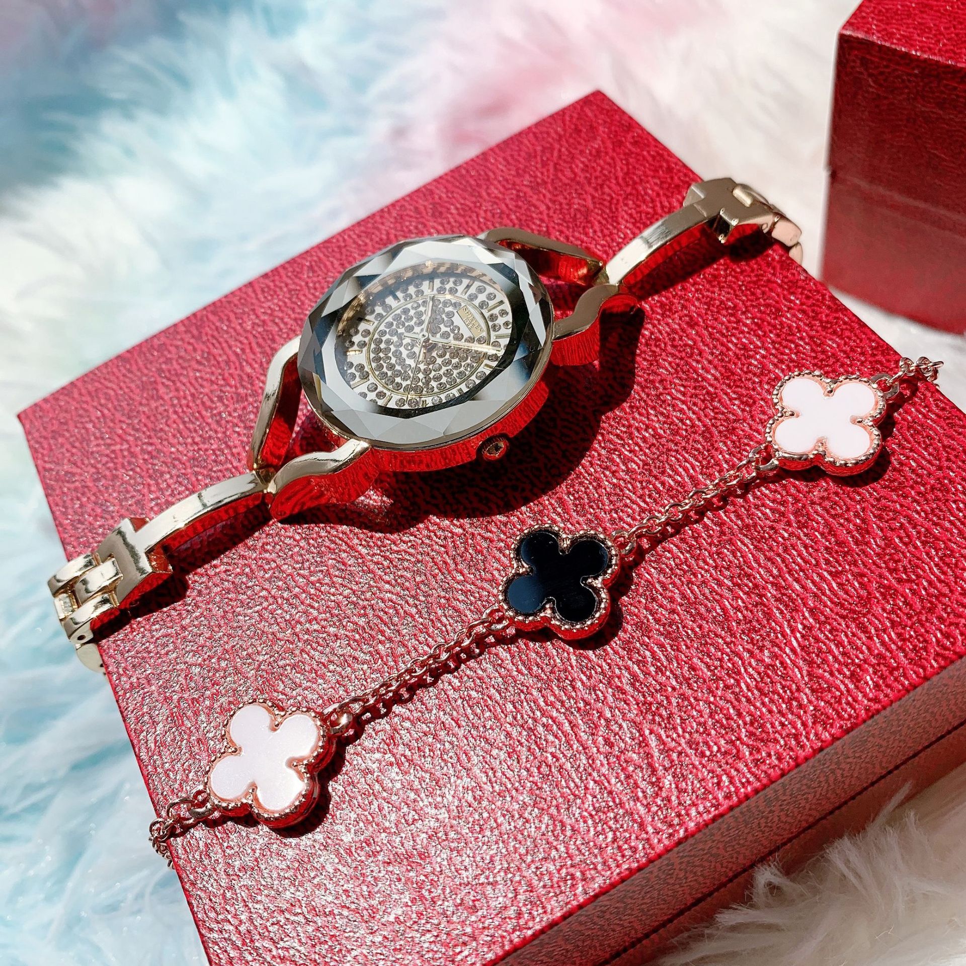 Jam tangan gelang wanita, gaya Korea kasual empat daun semanggi