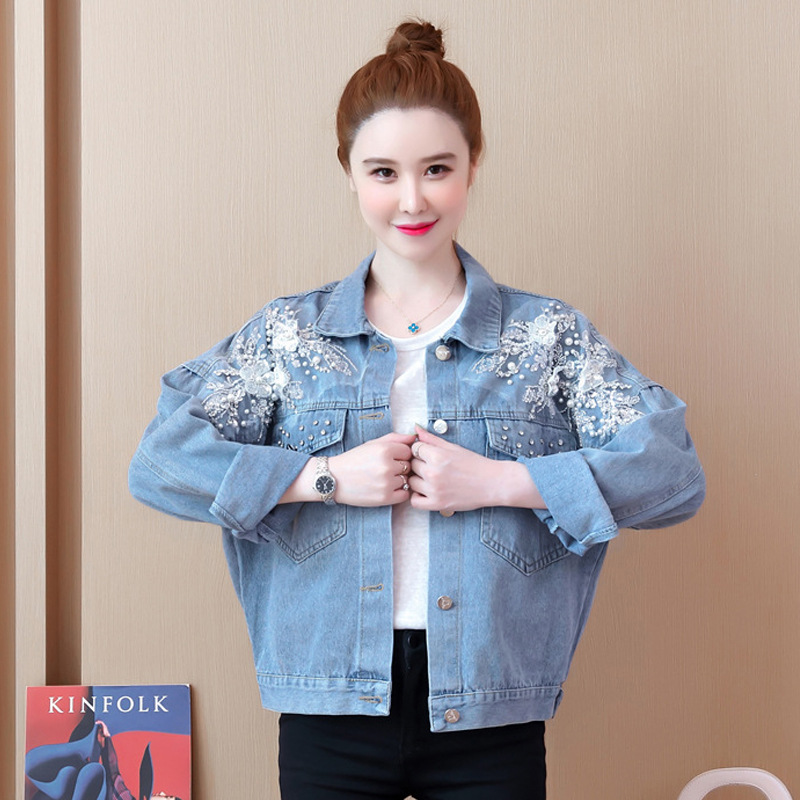 Jaket Denim Berpayet Manik-Manik Tebal untuk Wanita Musim Gugur 2025 Gaya Hong Kong Terbaru, Jaket Pendek Longgar Trendi yang Membuat Anda Terlihat Lebih Tinggi.