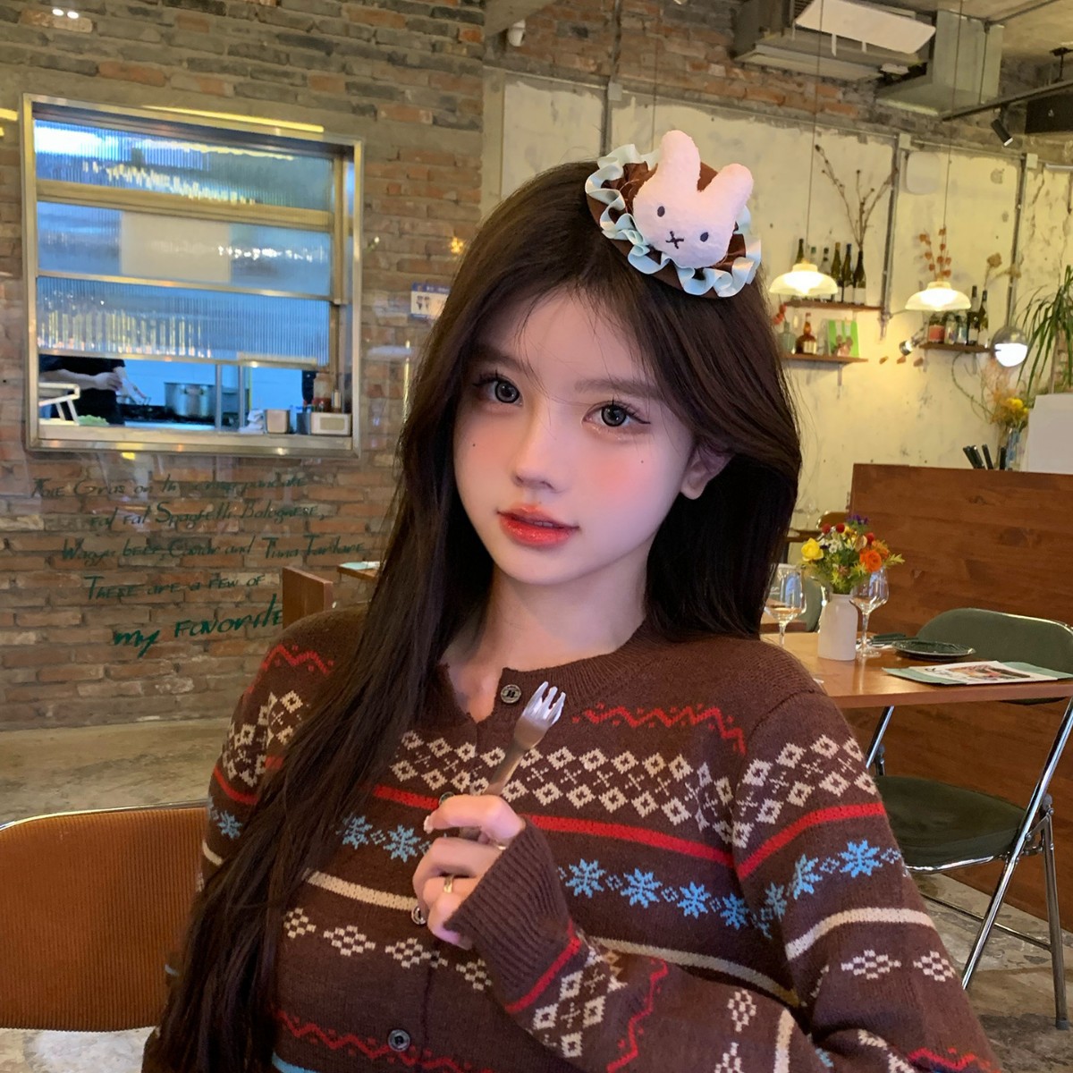 Aksesoris rambut jepit samping wanita, topi ulang tahun kue cokelat kelinci Miffy lucu Natal