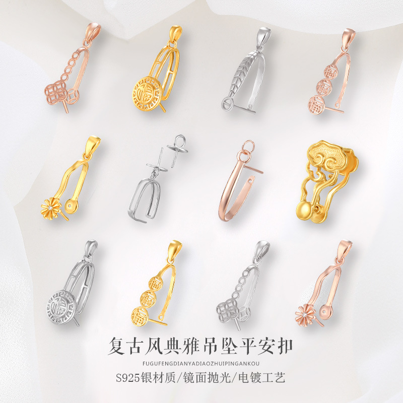 S925 klip gesper keamanan perak sterling, aksesori diy klip liontin lilin lebah gesper keamanan giok klip perak dukungan kosong