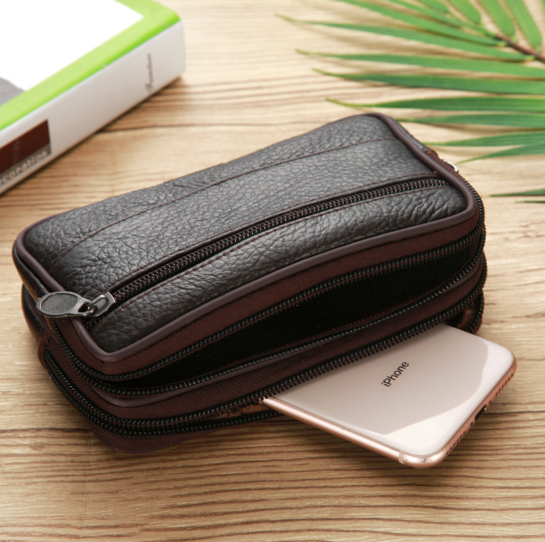 Tas pinggang pria anti air untuk ponsel, tas kulit sintetis multifungsi untuk lansia, tempat koin dan kunci, tersedia.