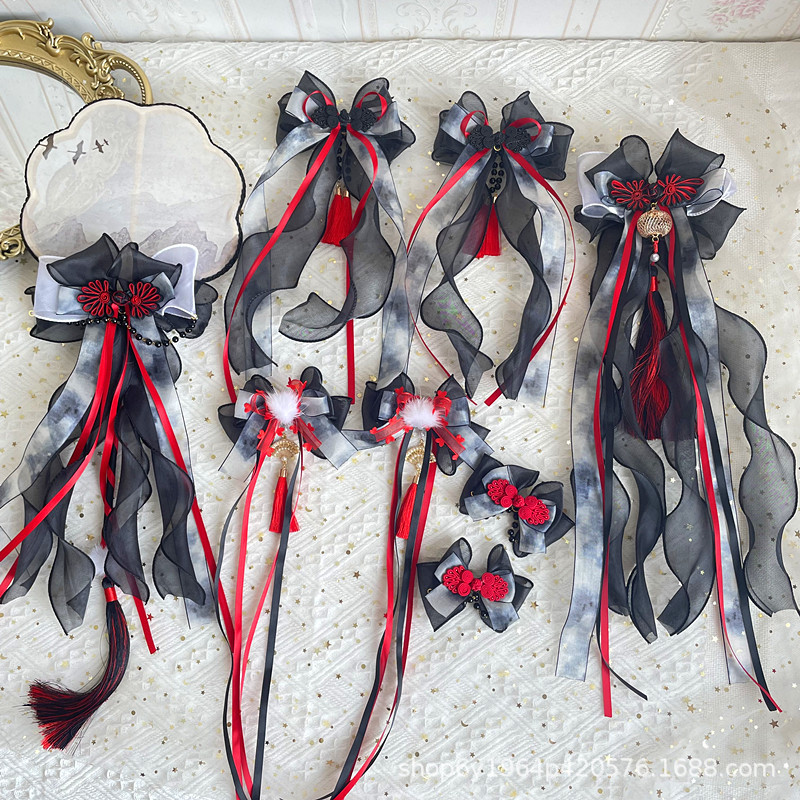 Aksesori rambut busur celup tinta gaya kuno Tiongkok baru aksesori pakaian Han gaya nasional mewah OK klip kipas Grup lukisan tinta