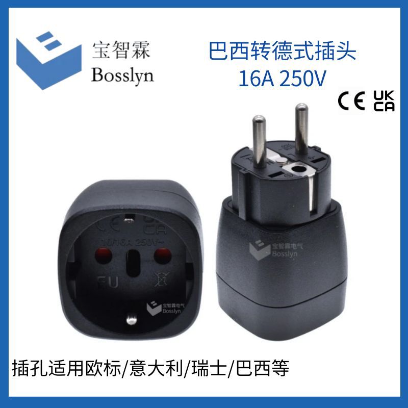 Sertifikasi CE Brasil ke standar Eropa steker konversi standar Jerman Italia ke steker daya Eropa 16A 250V