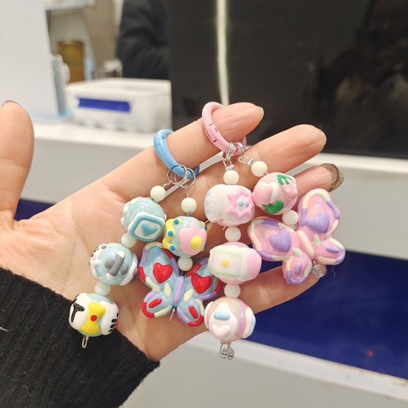 Lukisan tangan manik rantai ponsel pendek siaran langsung gaya yang sama dengan boneka biji-bijian lucu tas rantai bermanik ornamen gantungan kunci