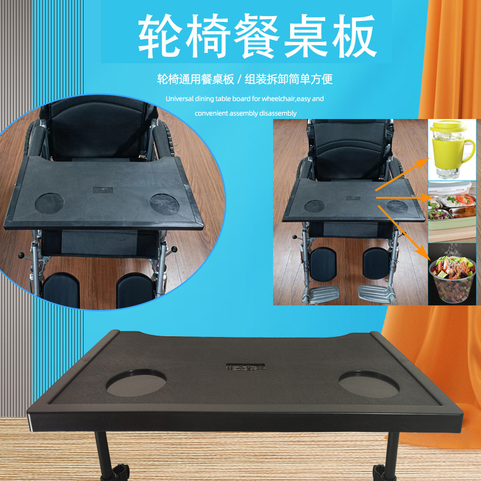 Meja Makan Kursi Roda Multifungsi Papan Makan Perawatan Lansia Dapat Dilepas ABS Hitam Perlindungan Pinggang Meja Makan Keranjang