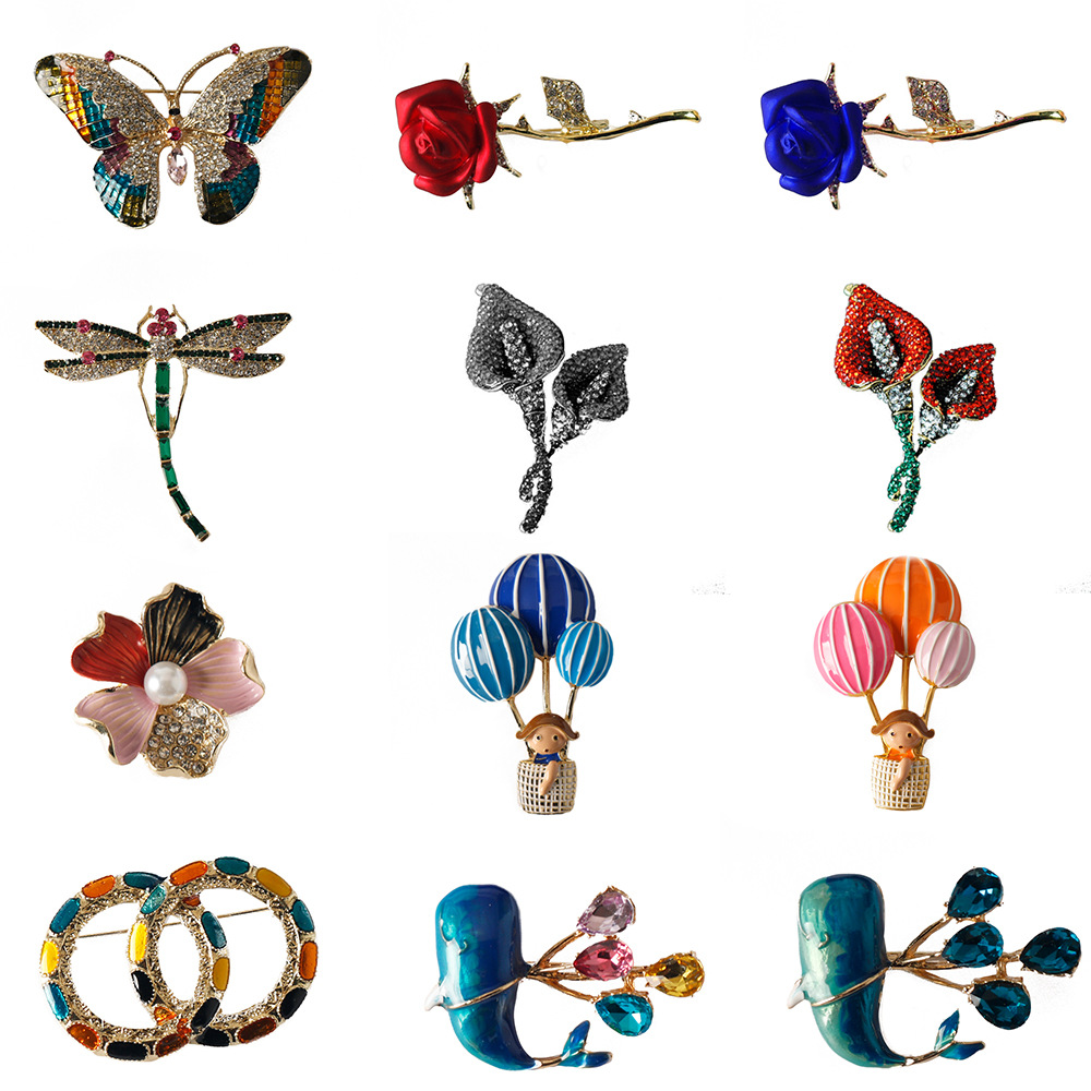 蝴蝶喇叭花朵热气球水晶蜻蜓三色花告白气球蓝鲸鱼玫瑰花领针胸针