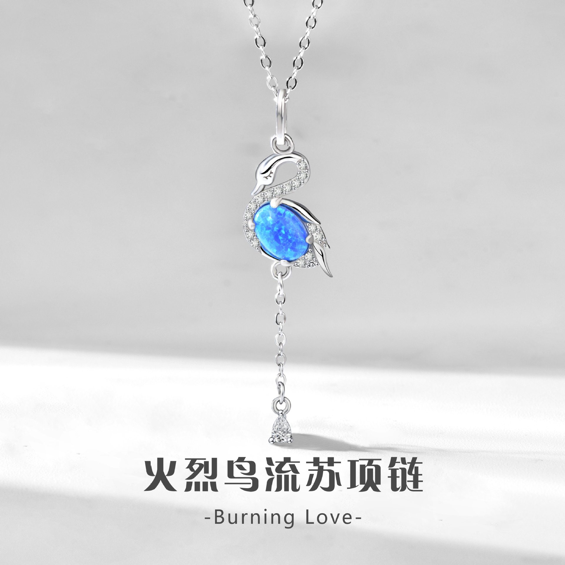 Kalung Flamingo Opal Asli Desain Ceruk Wanita Liontin Opal Perak Murni 925 Rumbai Rantai Tulang Selangka Elegan