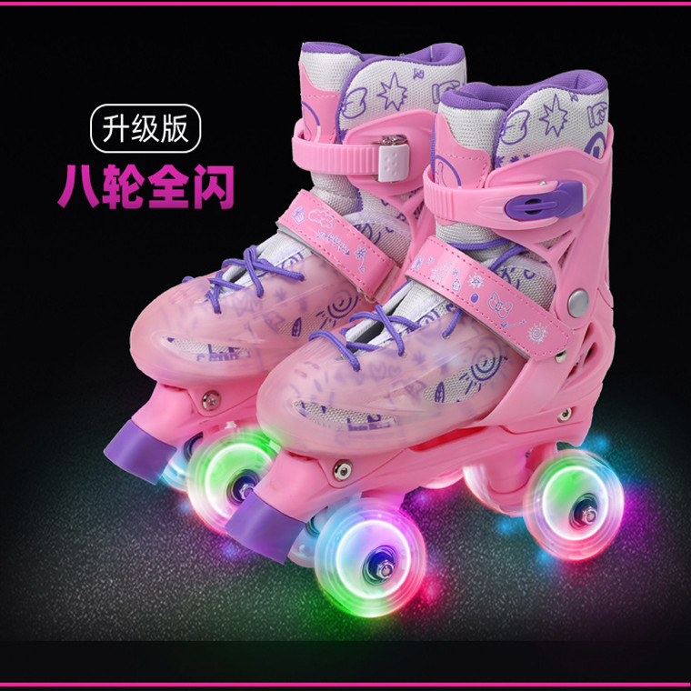 Weiwei sepatu skating sepatu roda ganda anak-anak, sepatu roller skating lapisan tunggal empat baris, sepatu anak-anak grosir umur 3-5-6-8-10