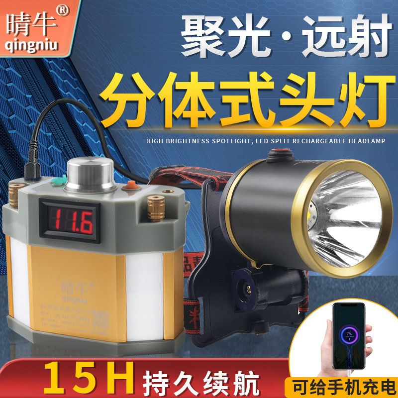 Lampu depan LED kuat jarak jauh, lampu penerangan luar ruangan anti air baterai lithium 12V, lampu kepala penambang terpasang di kepala, super terang