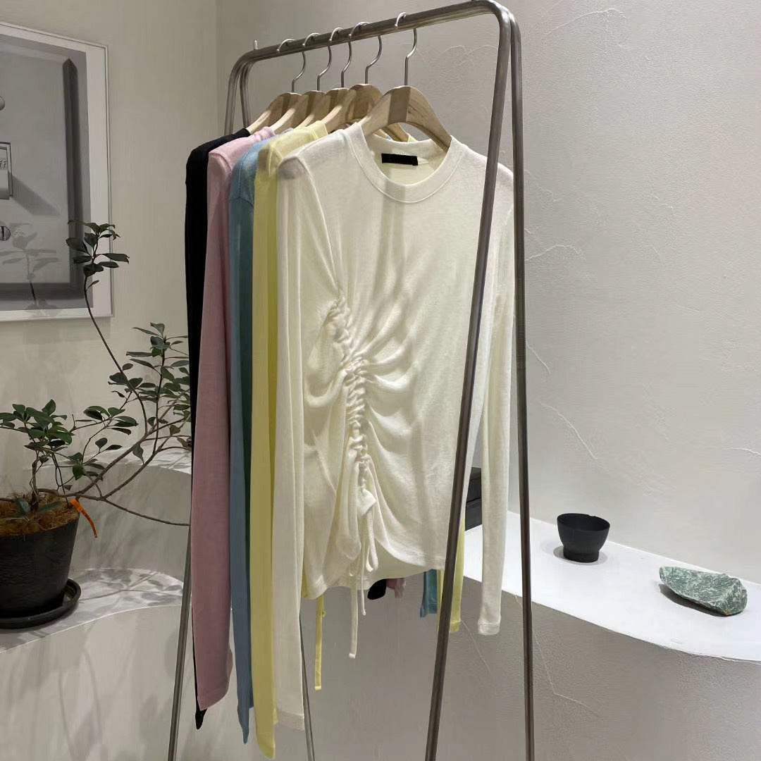 Penawaran khusus kaus pelindung matahari ~ 2024 musim panas baru nyaman tali serut warna polos tipis lengan panjang kaus leher bulat