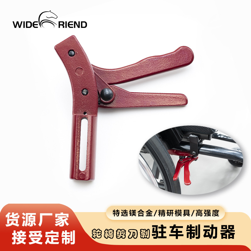 Aksesoris kursi roda olahraga: rem kursi roda berbahan aluminium alloy, rem parkir terintegrasi, hasil stamping.
