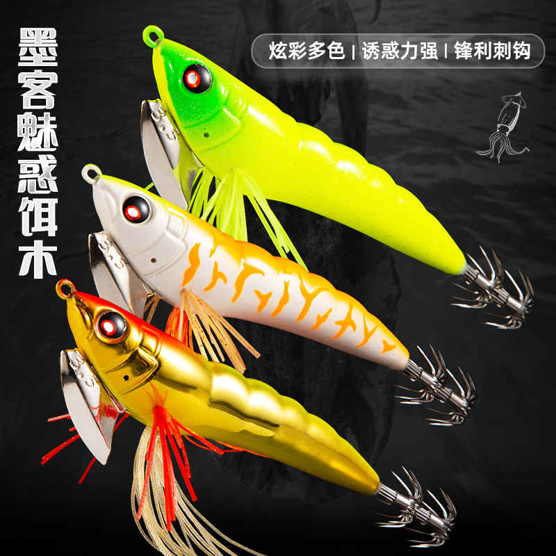 Moke kualitas tinggi seri pesona memancing laut umpan palsu kail udang kayu umpan khusus cumi umpan palsu udang kayu