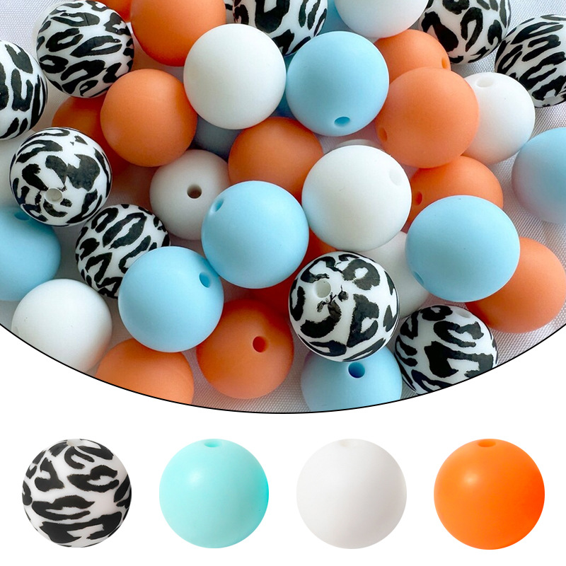Amazon perhiasan silikon bermanik-manik setelan dot bayi rantai macan tutul longgar aksesori manik-manik silikon kelas makanan grosir