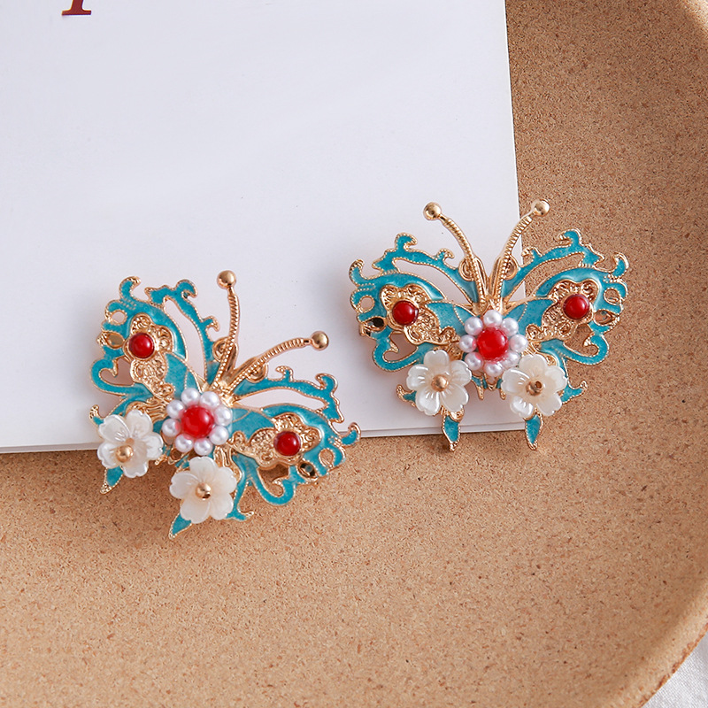 Hanfu klip samping jepit rambut anggrek, aksesori jepit rambut palsu klip samping kepala belakang gaya kuno telinga dahi rusak