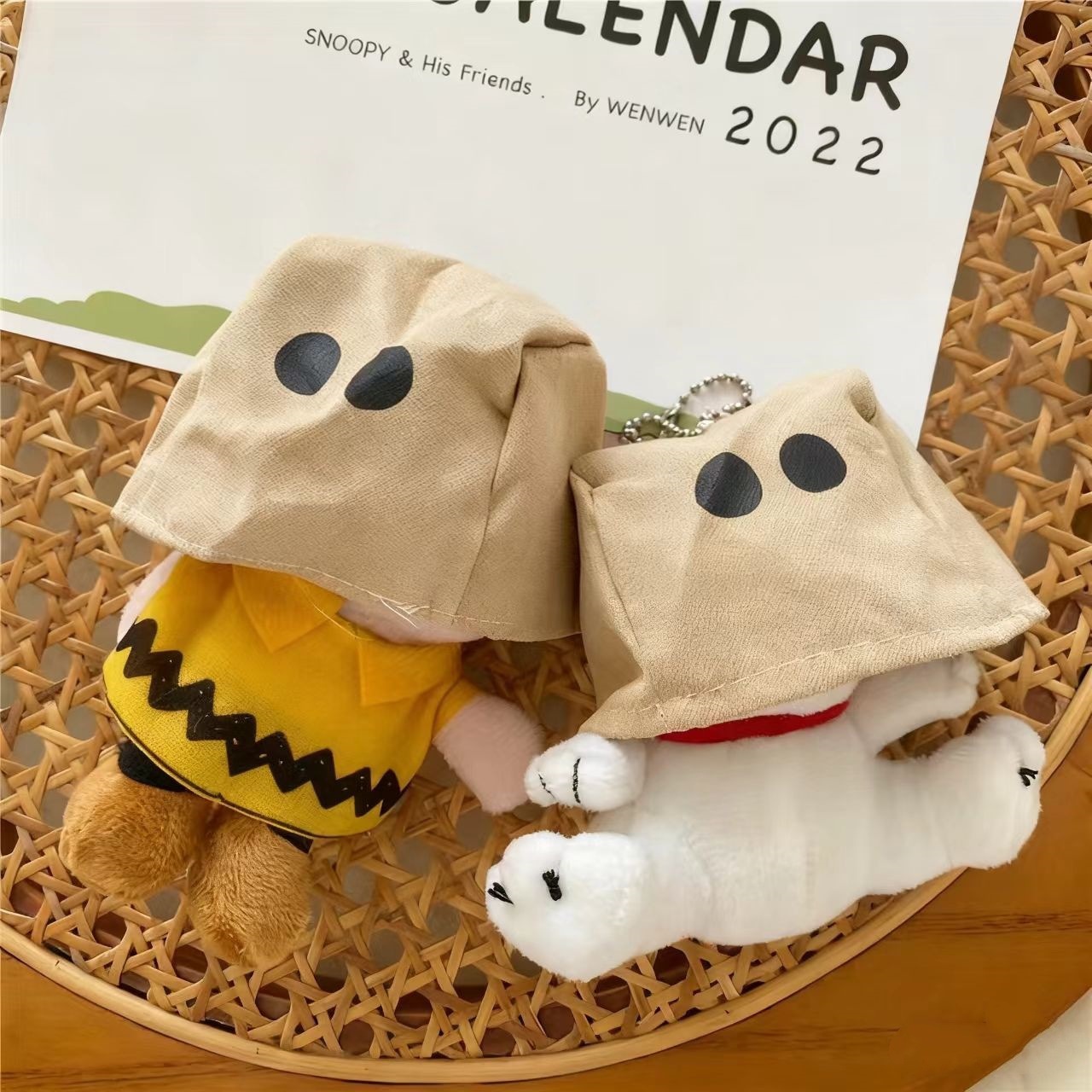 Tas kertas mewah lucu berkerudung Snoopy Charlie tas liontin boneka mewah gantungan kunci buku liontin