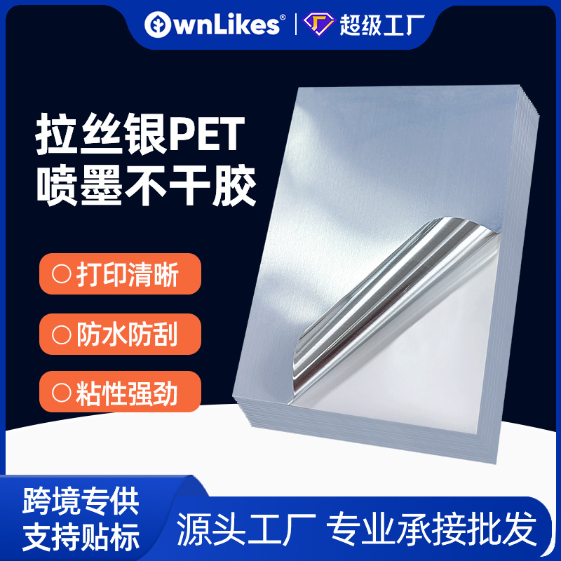 Penjualan langsung pabrik stiker botol A4 inkjet printing warna silver brushed, perekat sendiri, bahan PET tahan air dan anti gores, stiker label wine