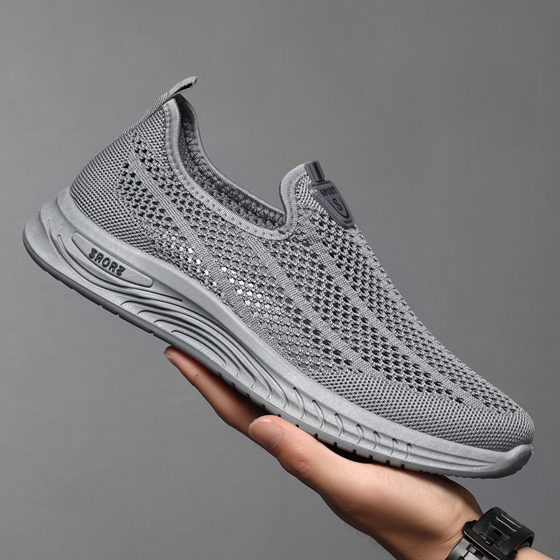 Sepatu kasual musim panas berbahan rajutan ringan, anti selip, nyaman ala Beijing kuno untuk pria paruh baya dan lanjut usia, serbaguna dan kasual, penjualan langsung dari pabrik.