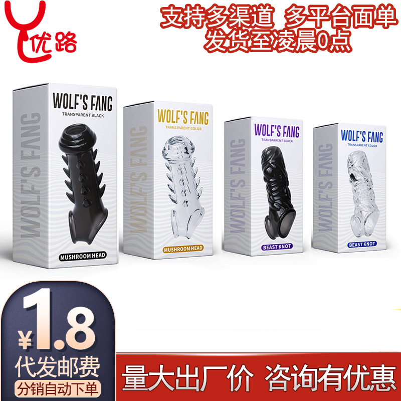 Produk seks dewasa set penis set kristal transparan hitam simpul binatang serigala kepala jamur manis
