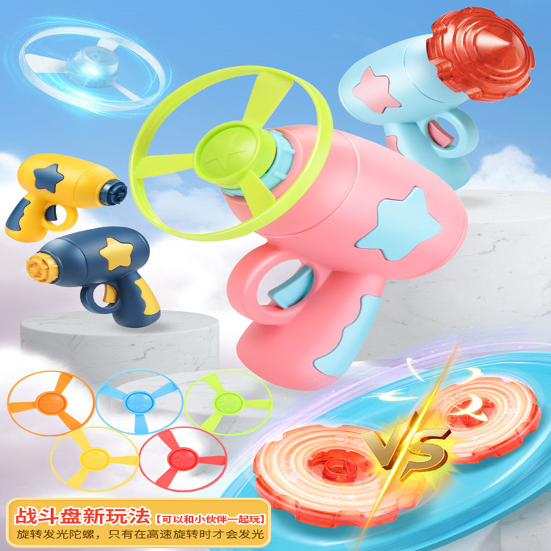 Tiktok grosir mainan anak, Model sama terbang bambu dragonfly Frisbee dengan flash gyro piring terbang pistol luar ruangan pesawat