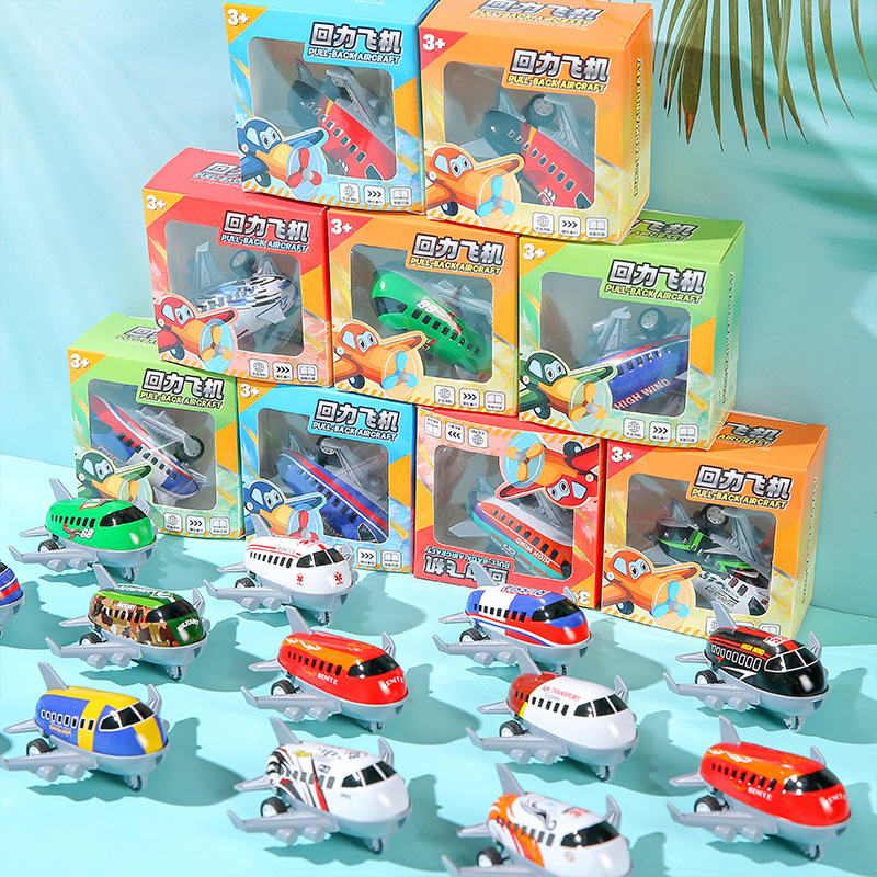 Mainan pesawat tarik mundur anak-anak, kotak kartun model pesawat terbang kecil DIY hadiah hadiah siswa taman kanak-kanak grosir