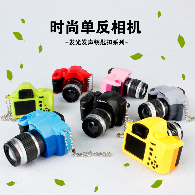 Liontin kamera SLR DIY aksesori casing ponsel liontin perhiasan bagasi kreatif gantungan kunci suara pemancar cahaya LED