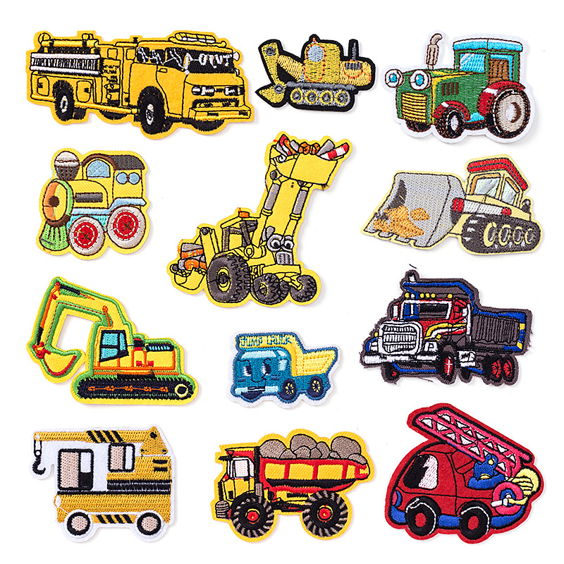 Kendaraan teknik cerita bordir stiker kain penggali perekat derek truk bulldoser pakaian patch stiker bordir label