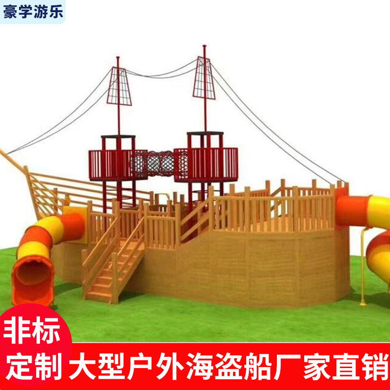 Fasilitas hiburan kapal bajak laut kayu besar luar ruangan peralatan hiburan tanpa daya standar kapal bajak laut luar ruangan