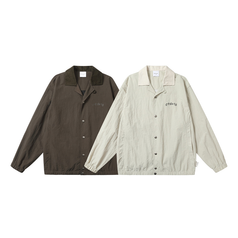 City fanpin jaket gaya Mailyard, jaket motif huruf, lapel korduroi, musim semi, baru, 2024